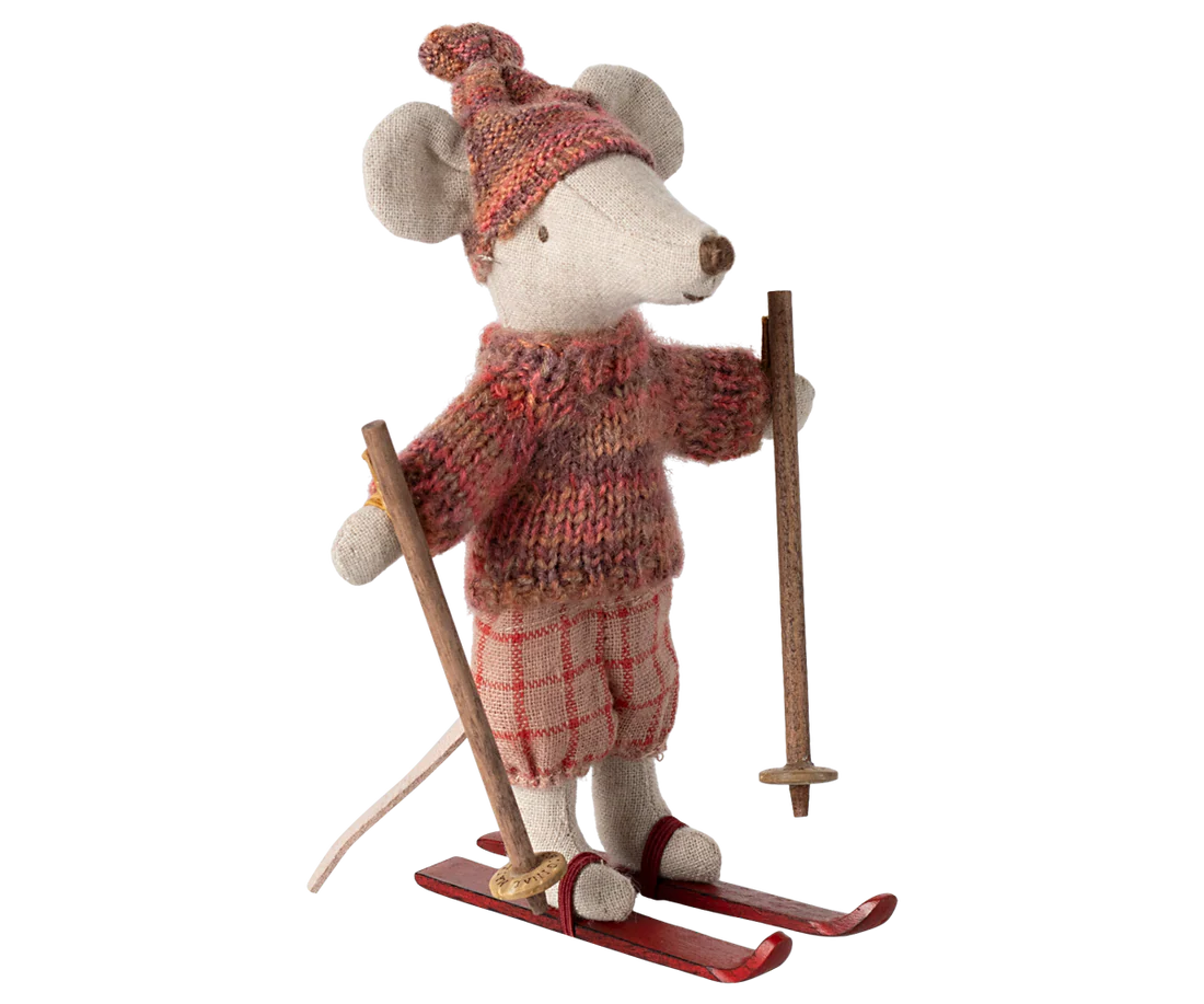 Winter mouse with ski set, Big sister - Rose Maileg