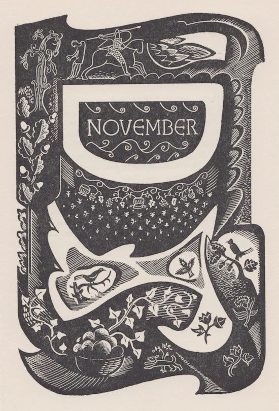 This beautifully designed book, first published in 1953, is unusual in being a mixture of commonplace, diary, short story, recipes – and woodcuts. The book is dedicated to Tirzah Garwood (then Ravilious and later Swanzy) but the woodcuts are not by her because she had died two years before. They were done by a friend, Malcolm Ford (who, like Stella Martin Currey’s husband, taught at Colchester Royal Grammar School).
